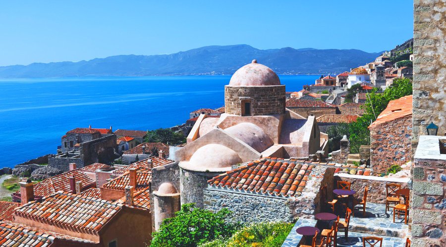 Located in the southeastern Peloponnese and separated from the mainland by an earthquake in 375 A.D, Monemvasia is also known as the “Gibraltar of Greece”. The city was founded by the Byzantines in the 6th century and became an important port.